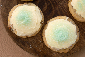 Pistachio Cookies with White Chocolate-Cream Cheese Frosting